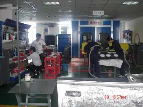 參觀龍神培訓中心的汽車鈑噴設(shè)備和工具
