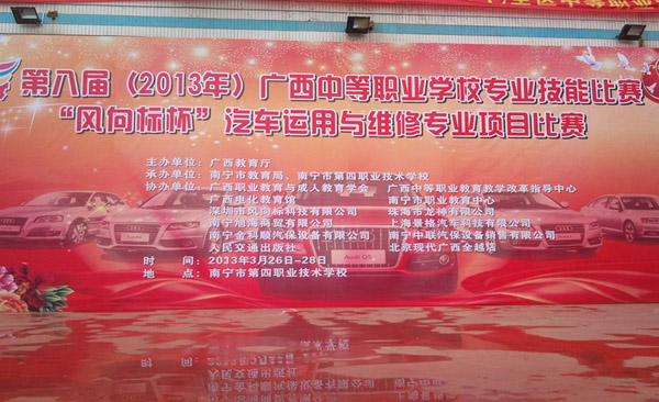 2013年3月28日,珠海龍神有限公司協辦的第八屆(2013年)全區(qū)中等職業(yè)學校專業(yè)技能比賽,“風向標”杯汽車運用與維修專業(yè)項目比賽廣西賽區(qū)在南寧市第四職業(yè)技術學校鳴鑼收兵,84人(42組)載譽而歸。