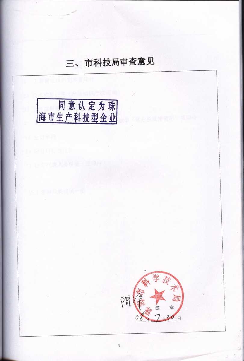 資格證書 一、ISO9001:2008質量管理體系認證ISO9001:2008質量管理體系認證證書 二、廣東省民營科技企業(yè)資格證書民營科技企業(yè)資格證書 廣東省民營科技企業(yè) 三、珠海市生產(chǎn)科技企業(yè)證書生產(chǎn)科技型企業(yè) 珠海市生產(chǎn)科技型企業(yè) 認定證書 生產(chǎn)科技型企業(yè)資格證書(以上圖片均可點擊放大) 2012-11-27 37345